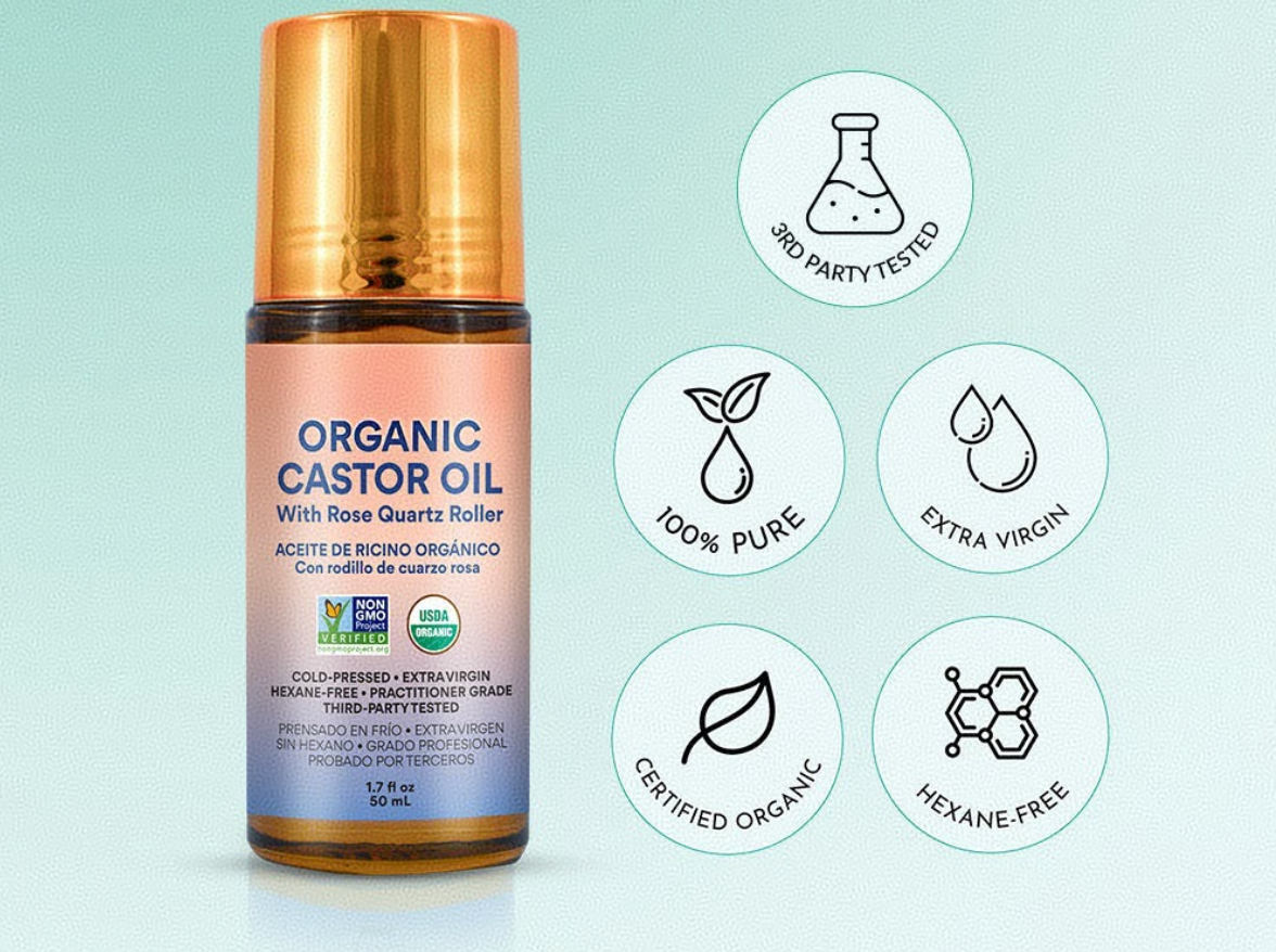 Key Ingredients: Organic Golden Castor Oil, Rose Quartz roller tip