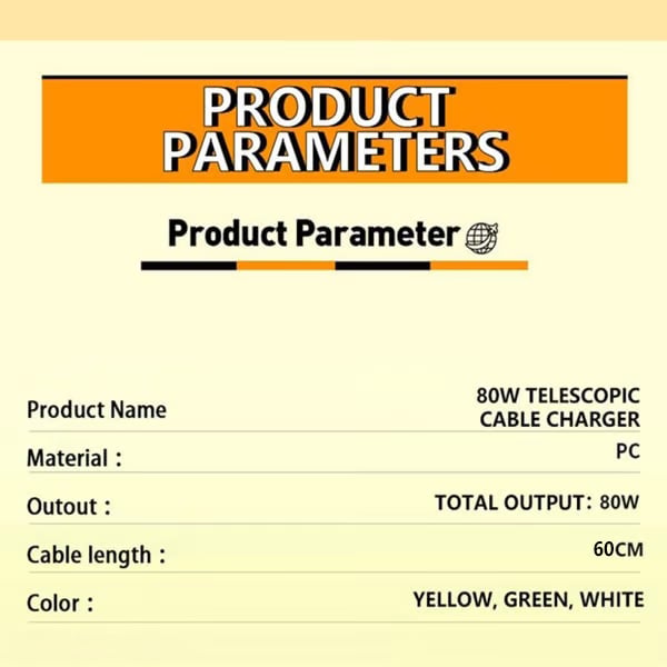 Output: 80W Max Total Output (65W from Retractable Cable).